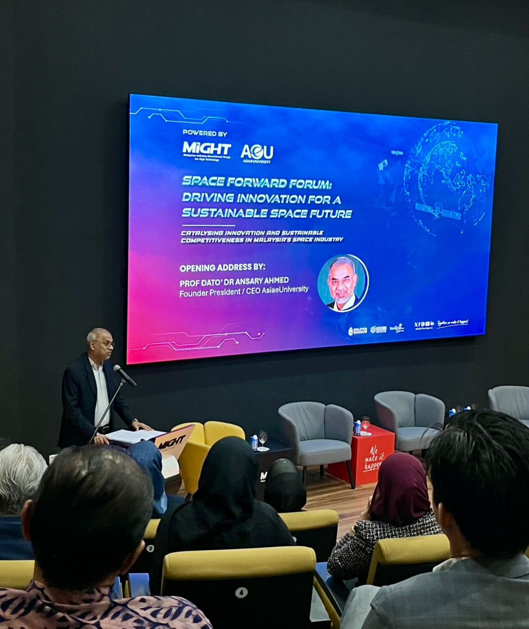 Hosted at the MIGHT Partnership Hub in Cyberjaya, the forum brought together policymakers, industry leaders, and innovators in the Malaysia’s space ecosystem. The timely dialogue framed space as Malaysia’s next frontier for business, innovation, and sustainable competitiveness.