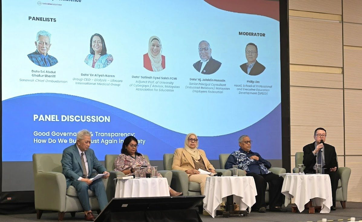 Jointly organised by the School of Professional and Executive Education Development (SPEED), Asia e University, and the Sarawak Business Events Association, with strong support from the Unit Integriti dan Ombudsman Sarawak, Jabatan Premier Sarawak, and the Malaysian Anti-Corruption Commission (MACC), the conference brought together leaders from government, business, and civil society for a full day of impactful dialogue.