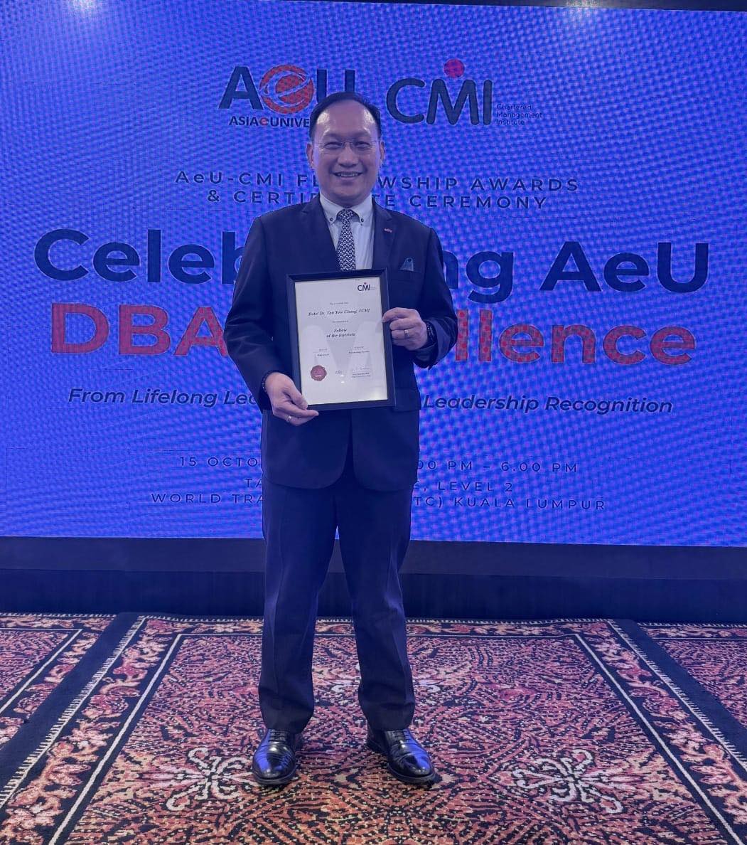 We extend our warmest congratulations to Adjunct Professor Dato Dr Tan Yew Chong, Chairman of the SPEED Advisory Council (SAC), on being conferred the prestigious Fellowship of the Chartered Management Institute (CMI) during the Celebrating AeU DBA Excellence event held today at the Tanjung Lounge, World Trade Centre.