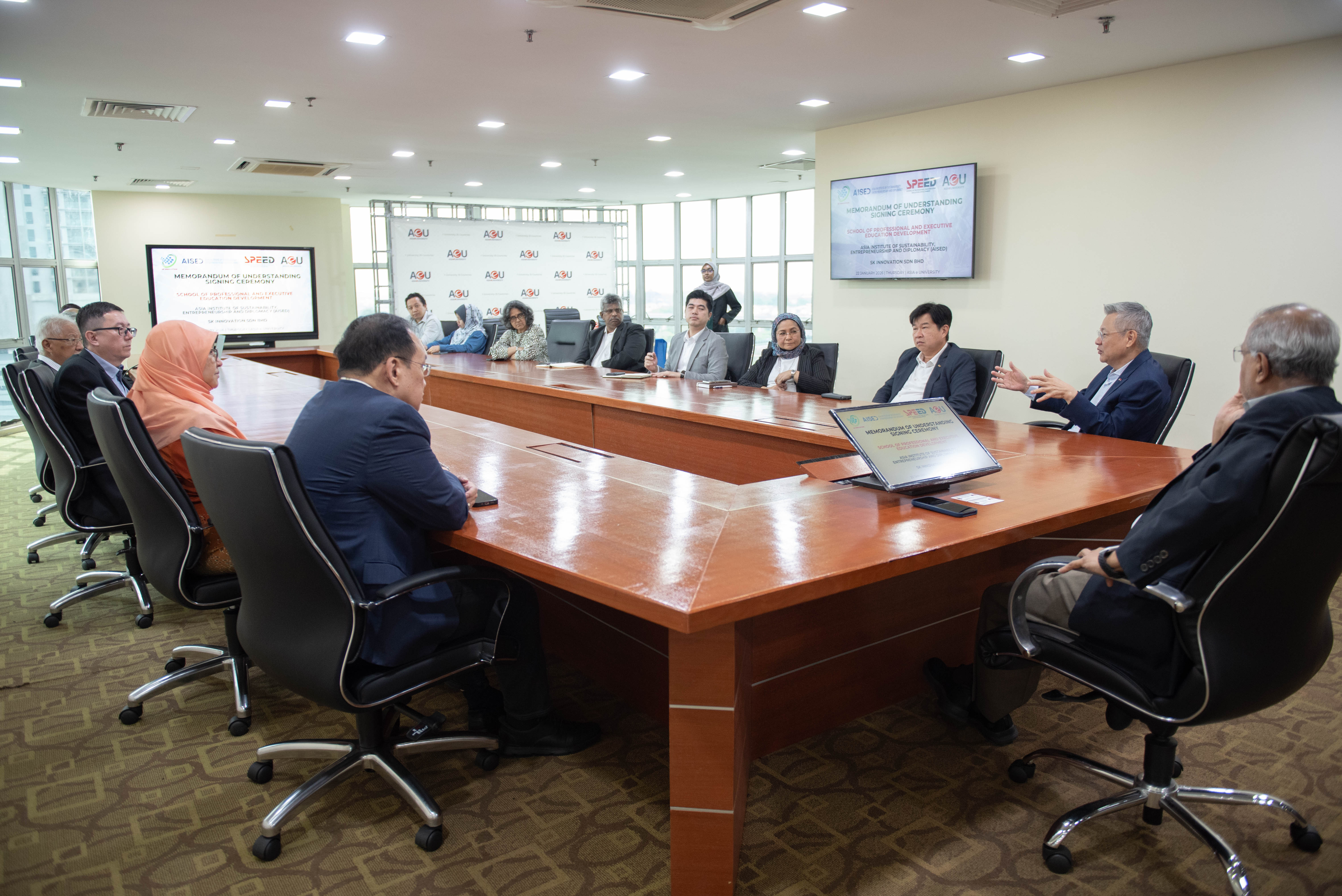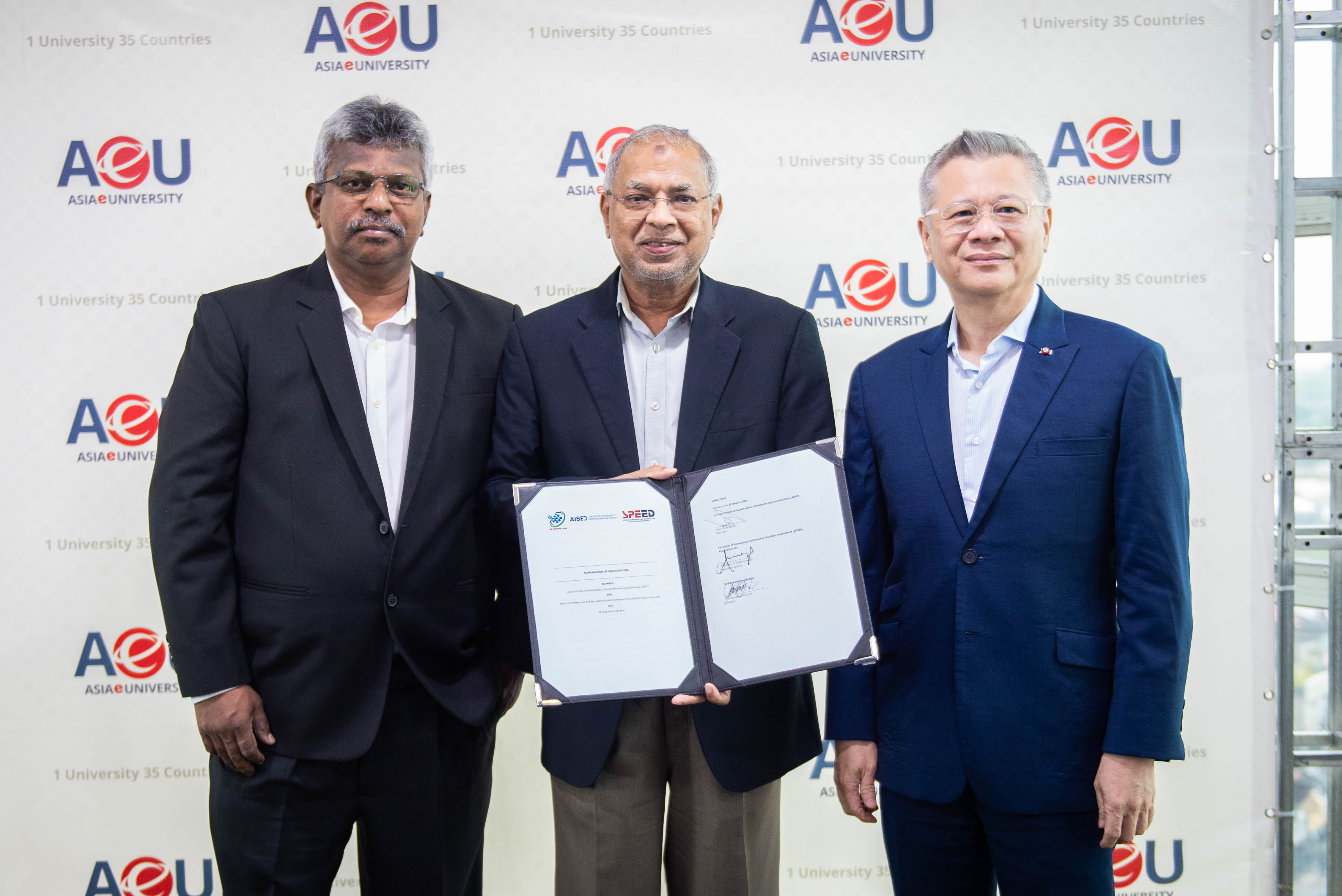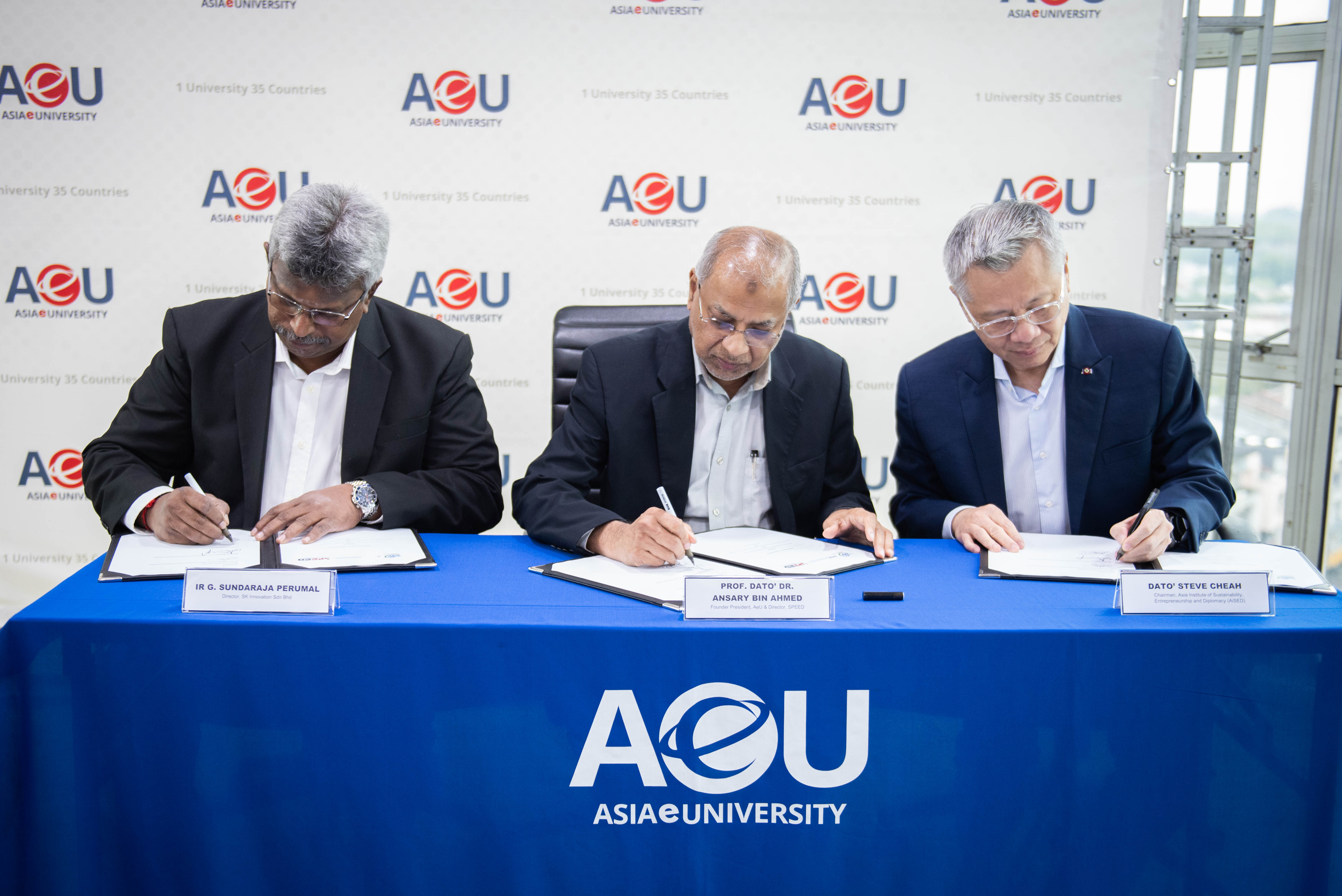 AeU-SPEED, Asia e University has formalised a strategic partnership with Asia Institute of Sustainability, Entrepreneurship and Diplomacy (AiSED) and SK Innovation Sdn Bhd to launch the Entrepreneurial Development, Growth and Empowerment (EDGE) Programme.